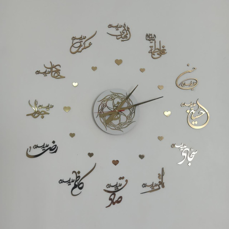 اسامی 14 معصوم در قسمت اعداد و وسط ساعت قرار گرفته