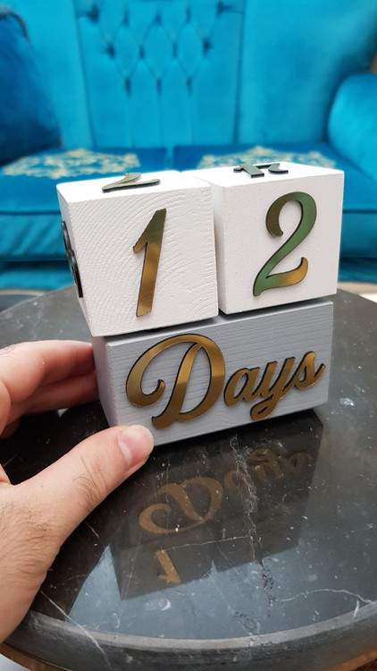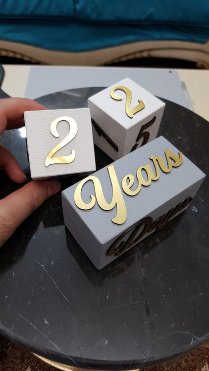 اعداد و حروف طلایی روی مکعب ها از جنس مولتی استایل براق است